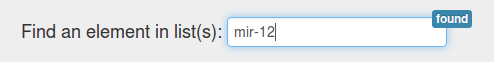 Fill the input field on the top of the page to search for an element (case sensitive). Three different status are possible: